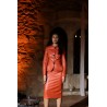 Jaqueta em pele tijolo com botões e com aba na cintura